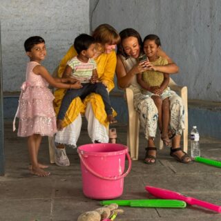 Zaraia and Ruthie Pines with children who attend the CRHP pre-school, 2025