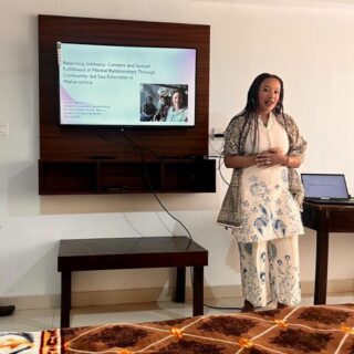 Zaraia presenting her sex education research and findings in Jamkhed, India, 2025