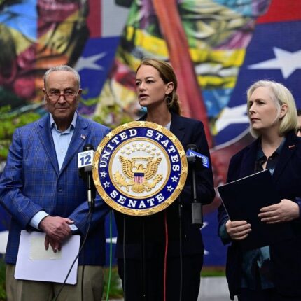 Commissioner Kavanagh with Senators Schumer and Gillibrand at a press conference lithium ion batteries in e-bikes.